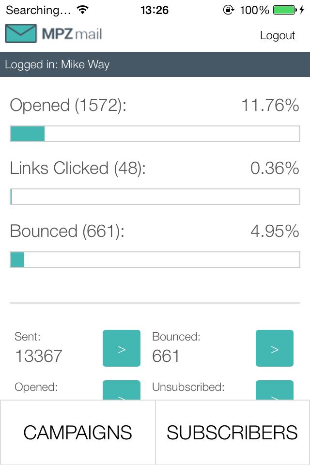 Conéctese a su cuenta MPZ Mail y cree y monitoree las campañas de marketing por correo electrónico en tiempo real. También puede ver y agregar suscriptores donde sea que esté.